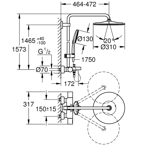 • Верхний душ